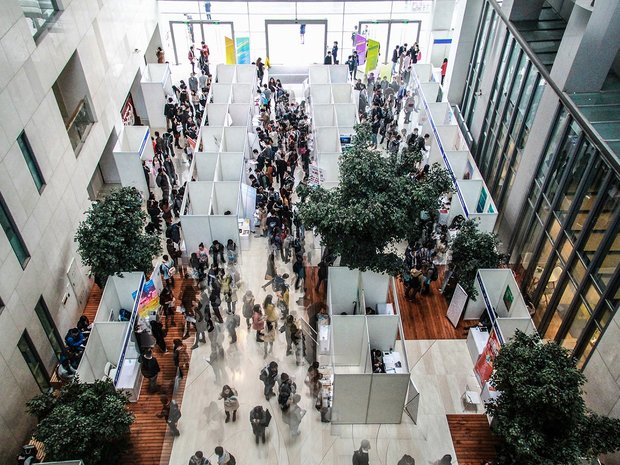 今年公司预计毕业的本科和硕士毕业生近600人,上午8:30,招聘企业陆续到场,十点左右,会场已是人声鼎沸,有的企业桌位前已经排起了长队。拿着作品集和简历的应届毕业生们在展位间穿梭,寻找自己心仪的单位,或上前交流加深了解。
