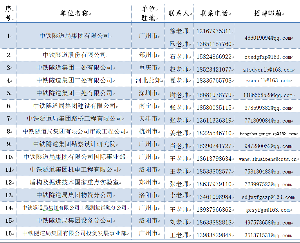 4.具体行程请关注“中铁隧道局校园招聘官微”微信公众号。