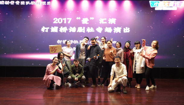 2017 “爱”汇演是由打浦桥剧社和YMCA剧社主办,与打浦桥文化活动中心、顾村街道、外滩街道、石门二路街道、淮海街道等五大社区共同推出的公益联合汇演。本次公益汇演活动所筹全部善款将资助一名山区贫困儿童完成学业。演出剧目包括第十四届上海老员工话剧艺术节优秀作品和YMCA·二九剧社选送的剧目。活动引进了高校社团进入到社区进行演出的模式,一方面使得社区居民能够与优秀大学话剧作品零距离接触,提高了大众的艺术兴趣,培养了艺术修养和审美情趣,坚定了人民群众共同脱贫致富奔小康的信心和决心;另一方面,社区为员工提供演出机会等的方式也为高校艺术发展添砖加瓦,增添活力。