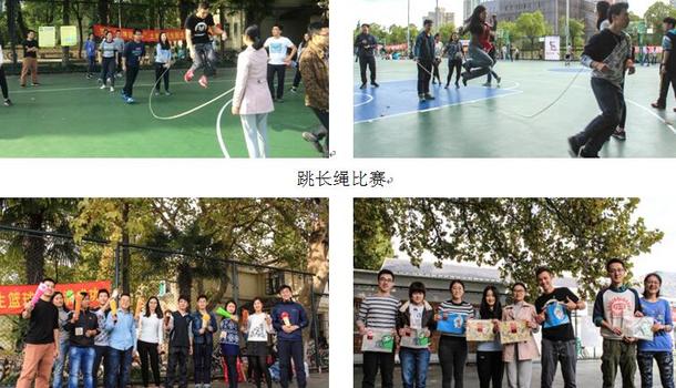 活动初始,大家便在工作人员的组织下自行组队并佩带手环。依照手环颜色的不同,同学们被分为“小黄人”“蓝精灵”“绿巨人”三支队伍进行竞争。趣味运动会共分为跳长绳、定点投篮积分赛、躲避球、趣味接力跑和拔河五个项目。