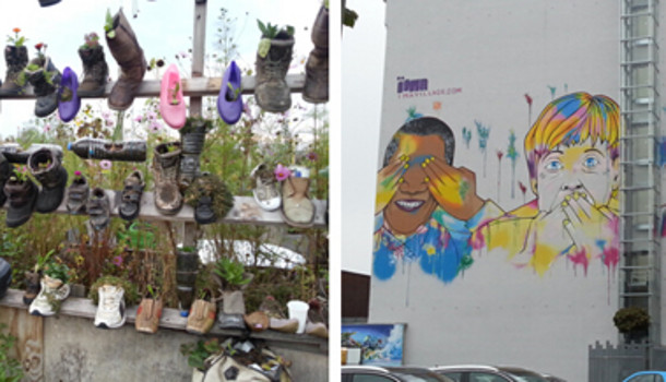 德国人爱好回收资源。因而,最特别的就是每个周末大大小小的跳蚤市场了。在这里,图书、衣物、碗碟、家具……应有尽有。艺术品、古董玩件中可以看到历史。临近市场的公园,也是周末好去处,三两乐队席地弹唱,引得人群围拢,微风阵阵吹传谈笑,和着暖和的阳光和亲切的泥土香,醉人缓心。