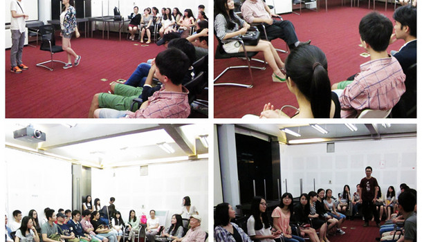 2014年9月26日晚6点半,红樱剧社本学期第一次社团活动在红楼B1会议室如期举行。到场同学达50多人,场面火爆。活动特邀嘉宾有来自上海戏剧公司的夏泰立老师和剧社总监制研工办李疏贝老师。