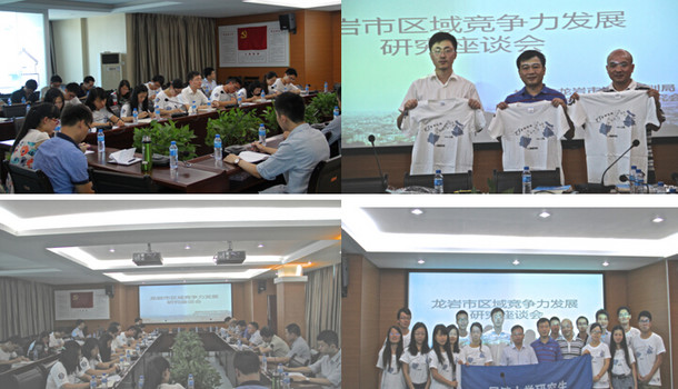 座谈会上,龙岩市规划局袁局长率先给我们做了精彩的介绍,讲诉了龙岩当地的基本发展状况以及以“红色、客家、生态”为主的地方特色。之后,研究会这边由扈龑喆老师和张璞玉队长将同济研究生新型城镇化研究生的背景以及关于龙岩市新型城镇化调研的前期工作向当地的各位领导做了汇报。当地领导对我们设计的衣服、设计的各个队员的名片以及前期的工作表示了极大的兴趣和肯定。汇报过会,项目组成员就前期准备中的一些问题,如山海经济协作开发区开展、龙岩乡镇改街道、村委到居委遭遇推行阻力等问题向当地各负责领导进行了咨询。领导同志们亲切而又详细地为我们进行了答疑和相关政策的解读。