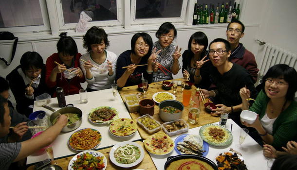 14号是国内的中秋节,我们15个员工一起搞了个中秋party,其实就是在一起搓一顿,但每个人必须自带熟菜过来。当大家一圈坐定时,发现那菜叫个丰盛啊。我迫不及待的尝遍了所有的菜,色香味俱全,super(德语里非常好的意思).真人不露相啊,大家原来都练过。我们就在宿舍的公共厨房里吃着,喝着,笑着,喊着……估计这是绝大多数同学的第一个海外中秋节,但此刻我们是跟国内同步的,中秋快乐,我们国内的亲人和朋友们!Prost(德语里的干杯).