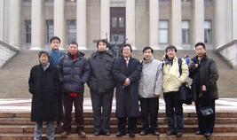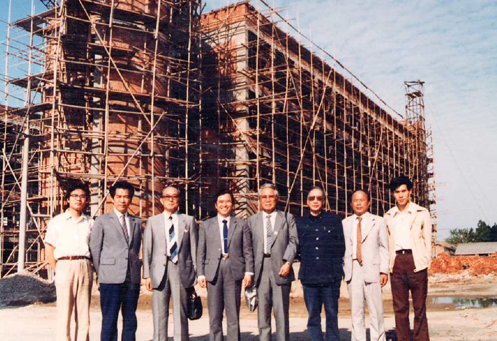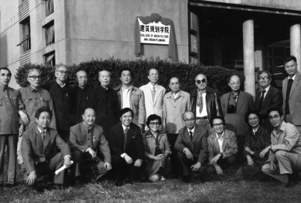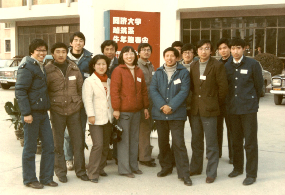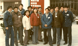 1987年日本代表团来建筑系进行合作,在戴复东等教授设计的明成楼前合影