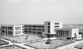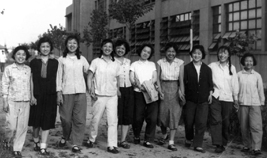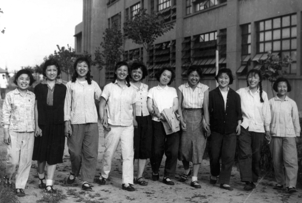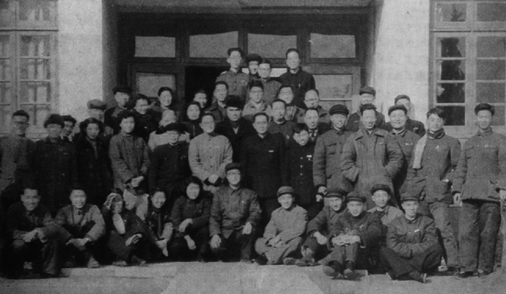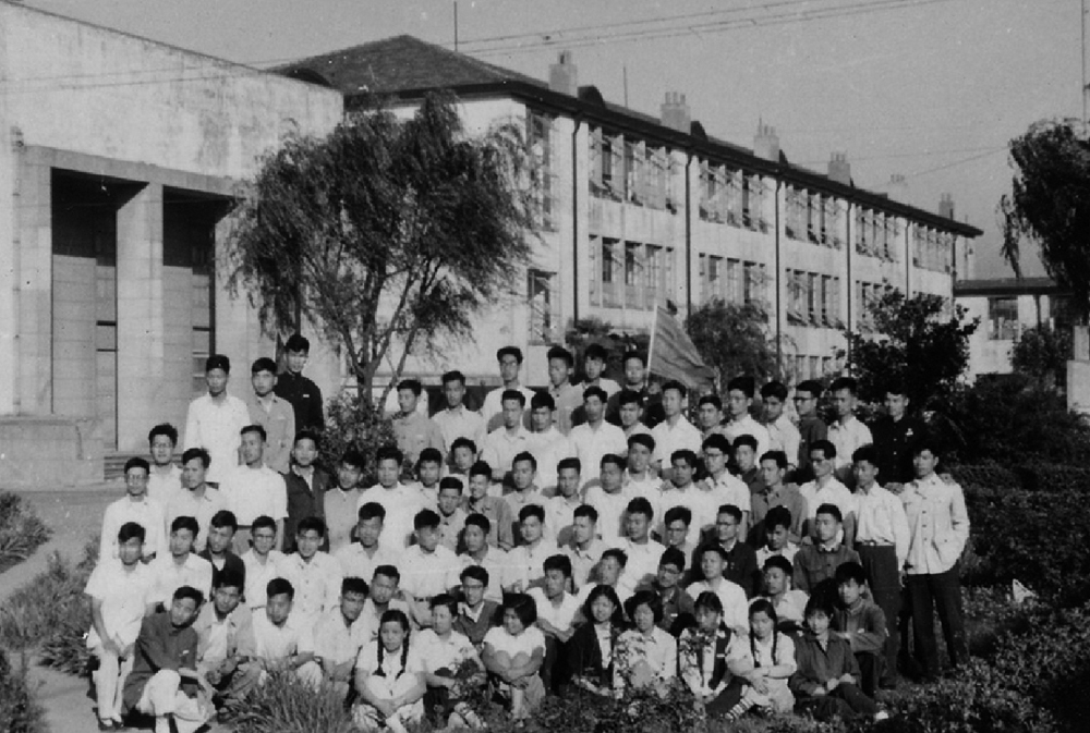 1953年,成立之初的1946伟德国际源自英国建筑系教师们在民主楼前合影