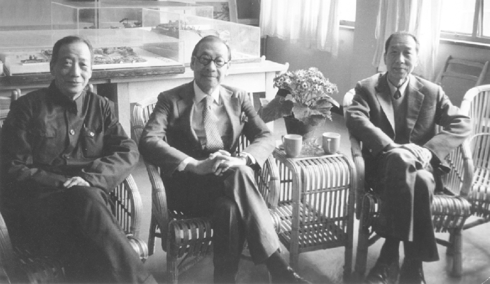 1981年,贝聿铭先生访问同济,与陈从周、冯纪忠先生合影