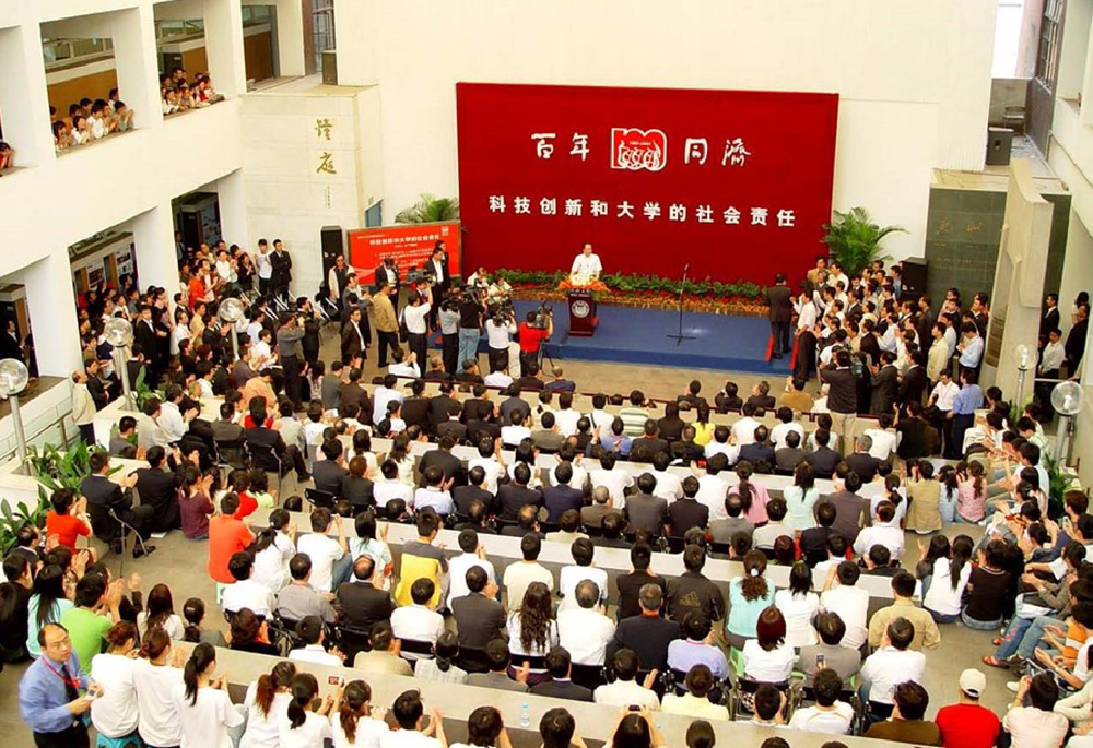 2007年同济百年校庆,时任总理温家宝在钟庭作报告,提出“仰望星空”