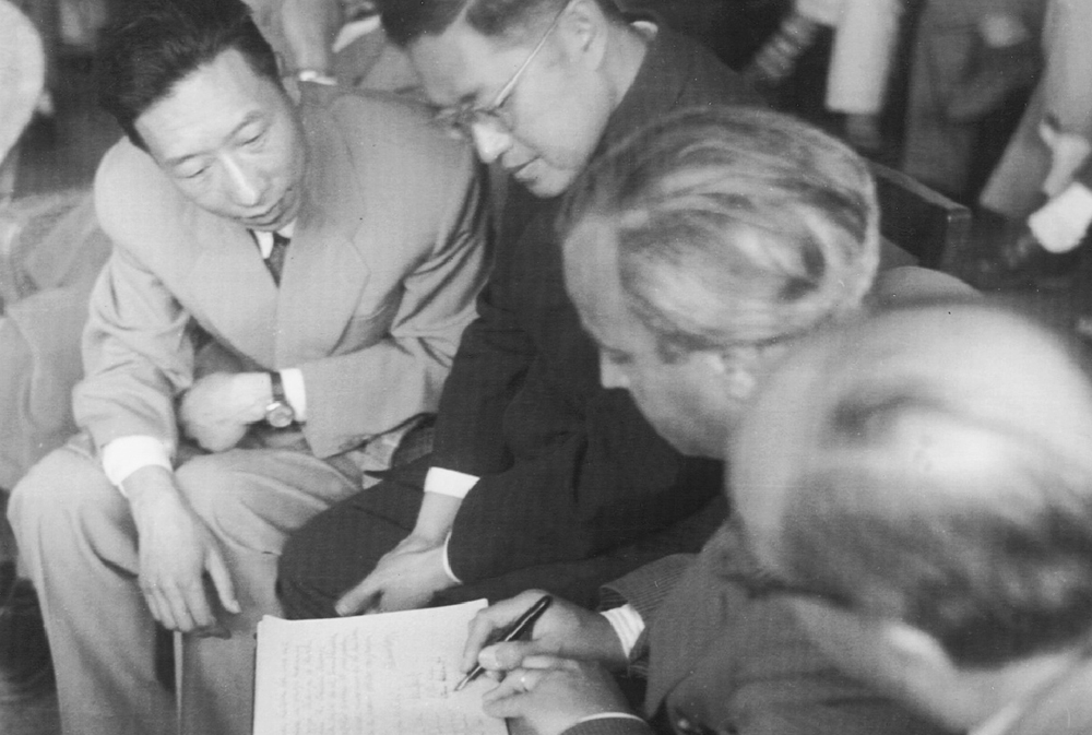1957年冯纪忠与与黄作燊及苏联专家克涅亚谢夫