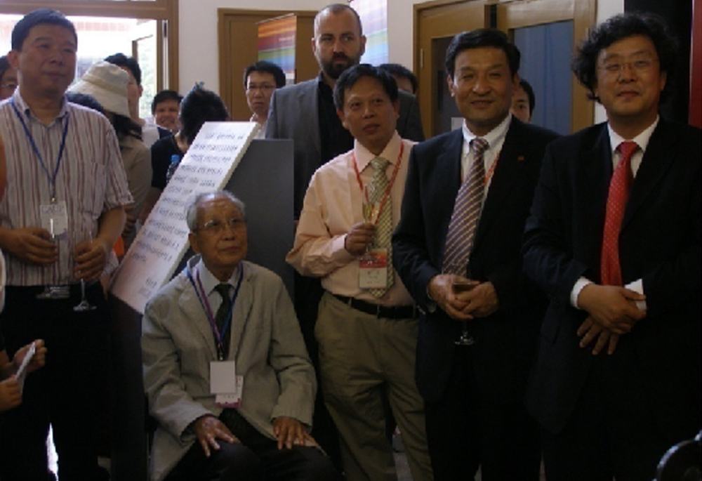 2004年,冯纪忠等为公司C楼落成典礼 揭幕, 设计师张斌
