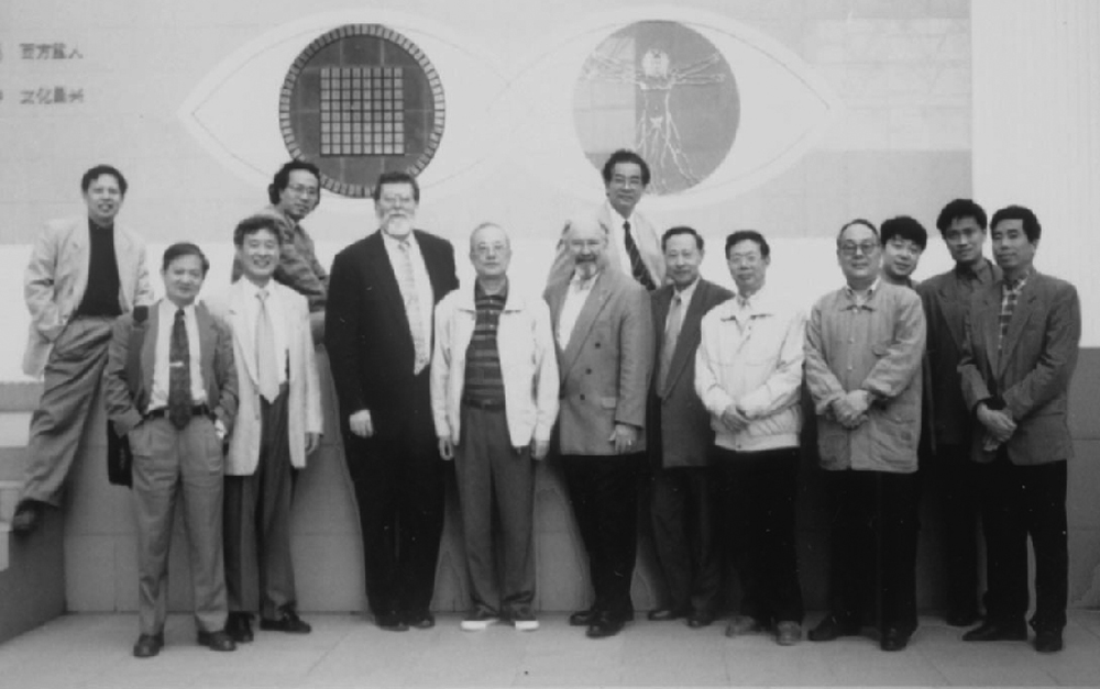 1987年,郑时龄陪同来访的矶琦新和理查德·迈耶