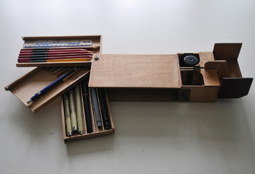 1978级员工王伯伟制作设计基础课程作业“台式文具盒”(1979)
