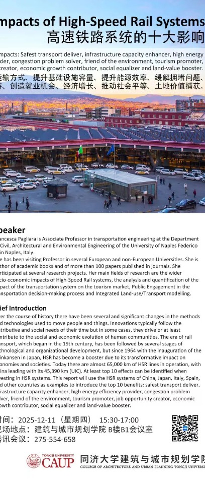 12月11日讲座丨Francesca Pagliara:高速铁路系统的十大影响