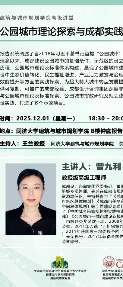 12月1日院级高等讲堂丨曾九利:公园城市理论探索与成都实践